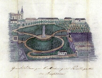 der österreichischen Kaiserin, ungarischen und böhmischen Königin, mährischen Marktgräfin usw. benannt. ![]() Der steile felsige Hang unter der Altstadt und dem Dom des hl. Nikolaus weckte am Anfang des 19. Jhd. die Aufmerksamkeit der Znaimer Bürger, die inspiriert durch den Geist des Wiener Biedermeiers sich einen weiteren Park in der unmittelbaren Nähe der Stadt wünschten. Gleichzeitig sollte der Zugang zum malerischen Flussbad beim Rabenstein, das heute nach dem Bau des Znaimer Stauwerkes überflutet ist, erleichtert werden. Im Jahre 1824 wurde, mit der Unterstützung der breiten Öffentlichkeit und der Mäzene, in der gotischen Stadtmauer unter dem Nikolaus Platz, ein klassizistisches Tor errichtet. ![]() Unter dem Pfarrhaus befand sich der Hillitzer Altan, dort wurden an Sonntagen Konzerte der Militärkapelle aufgeführt. Die Weingartenterrassen auf der anderen Seite wurden nacheinander zu einem Fliederparadiesgarten umgestaltet. Für die Mitte war ein Springbrunnen vorgesehen. Die heutige Gestaltung des Karolinenberges ergänzt eine Kreuzigungsgruppe des Kalvarienberges, die der Znaimer Bürger Pfändtner 1720 errichten ließ und die früher vor dem Unteren Tor (Wiener Tor) der Stadt stand. Karolinenberg wurde im Jahre 1922 durch den Muck-Weg mit dem Granitztal verbunden. Im Paradiesgarten findet man/frau heutzutage wieder Weingartenterrassen.